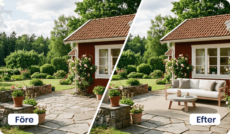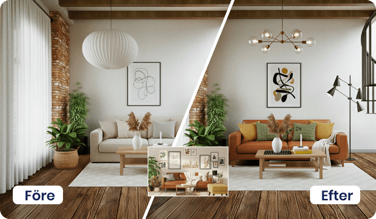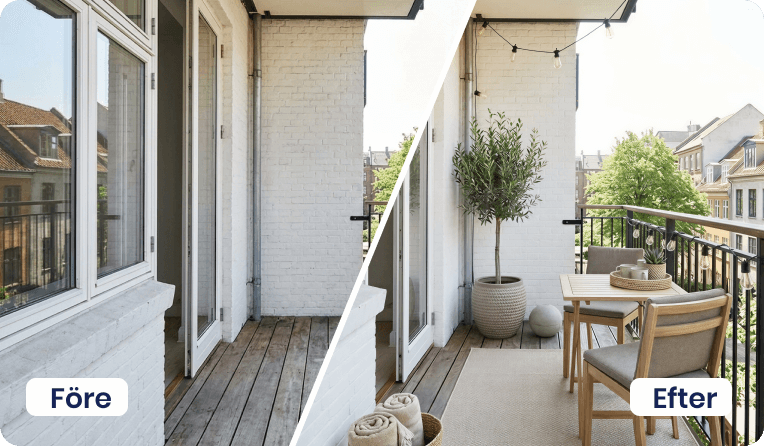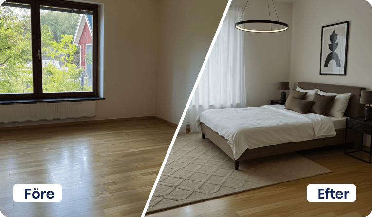 Ladda upp en bild och låt Proplab skapa inspirerande visualiseringar – perfekt inför uthyrning eller försäljning.