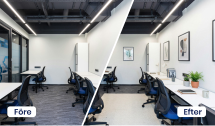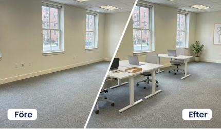 Från tom eller stökig yta förvandlar Proplab en lokal till en inspirerande arbetsplats. Skapa arbetsmiljöer som inspirerar till fokus, kreativitet och trivsel, allt från ett kontor avsett för en person eller ett helt öppet landskap med flera kontorsplatser och en loungedel. Få flera olika inredningsförslag som visar rummets fulla potential och gör det redo för nästa hyresgäst. Perfekt för att optimera både estetik och funktion, samtidigt som du skapar en arbetsmiljö där människor trivs och presterar på topp.
