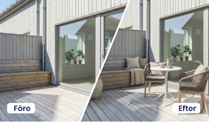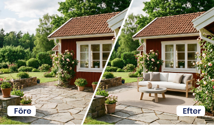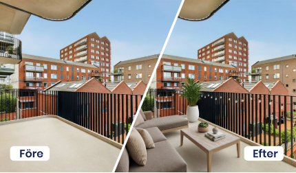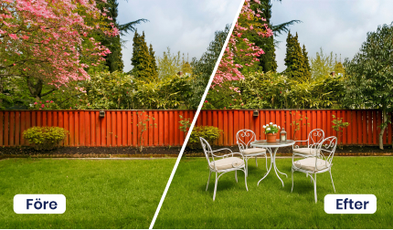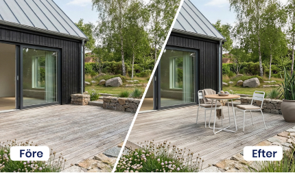 Visa utomhusytans fulla potential med Proplabs funktion möblera utomhus. Förvandla tomma ytor till attraktiva, möblerade utemiljöer som direkt fångar intresset. Oavsett om det gäller trädgård, balkong, altan eller terrass skapar Proplab realistiska och inspirerande visualiseringar som hjälper spekulanter att se värdet, känna atmosfären och föreställa sig livet på platsen.