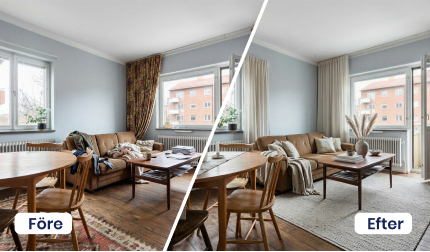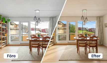 Med den här funktionen fångar du spekulantens uppmärksamhet redan i bildflödet. Den väcker nyfikenhet, engagerar och gör att fler stannar upp för att titta närmare på objektet. Många potentiella köpare har svårt att se bortom säljarens personliga stil, men med denna lösning skapar du ett neutralt, inspirerande intryck som gör det lättare för dem att föreställa sig sitt framtida hem. Det här är även ett kraftfullt verktyg för att lyfta kommande objekt och skapa förväntan redan innan försäljningen drar igång. Du kan också använda den som ett säljknep för att ge nytt liv åt bostäder som legat ute en tid och där intresset behöver väckas på nytt.